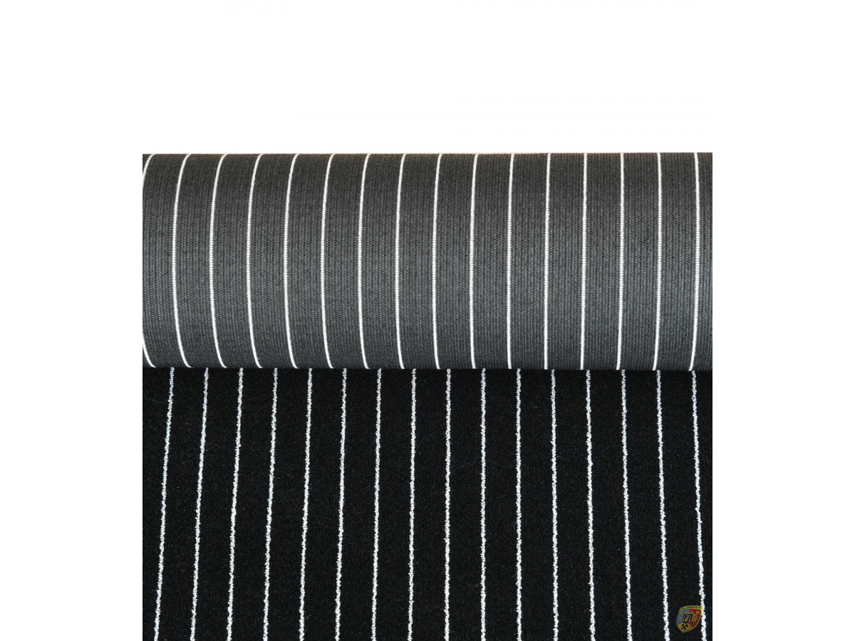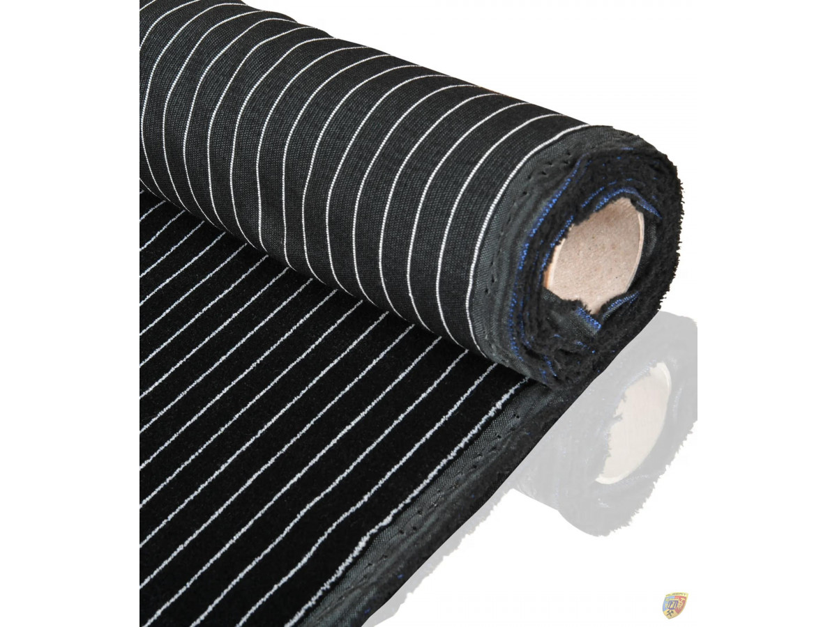 Das Stoffstück in Nadelstreifenvelours (schwarz/weiß) besitzt die Maße 2 x 1,5 m.