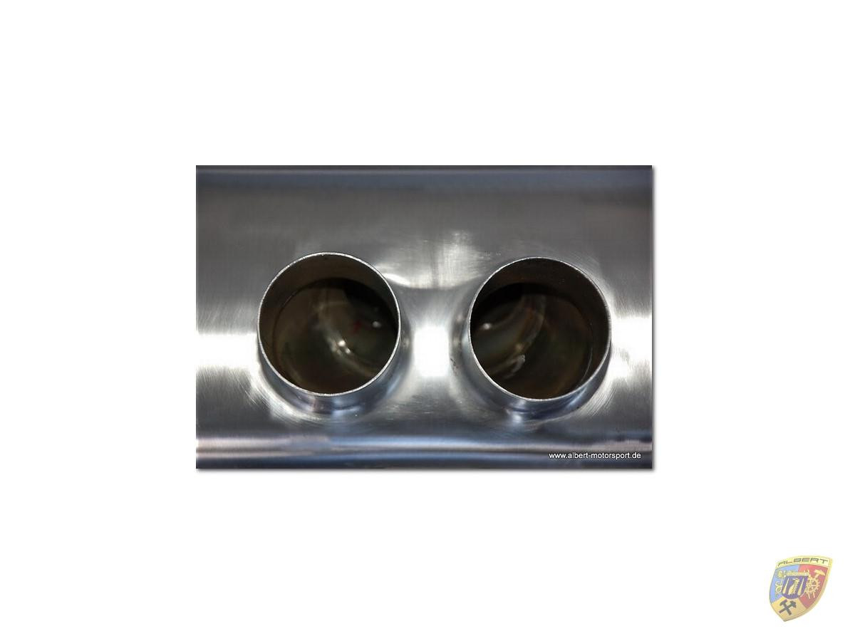 Hochwertige Rennsport Auspuffanlage für Porsche aus gebürstetem Edelstahl. Diese Anlage hat gemessene 91,5 - 92 dB