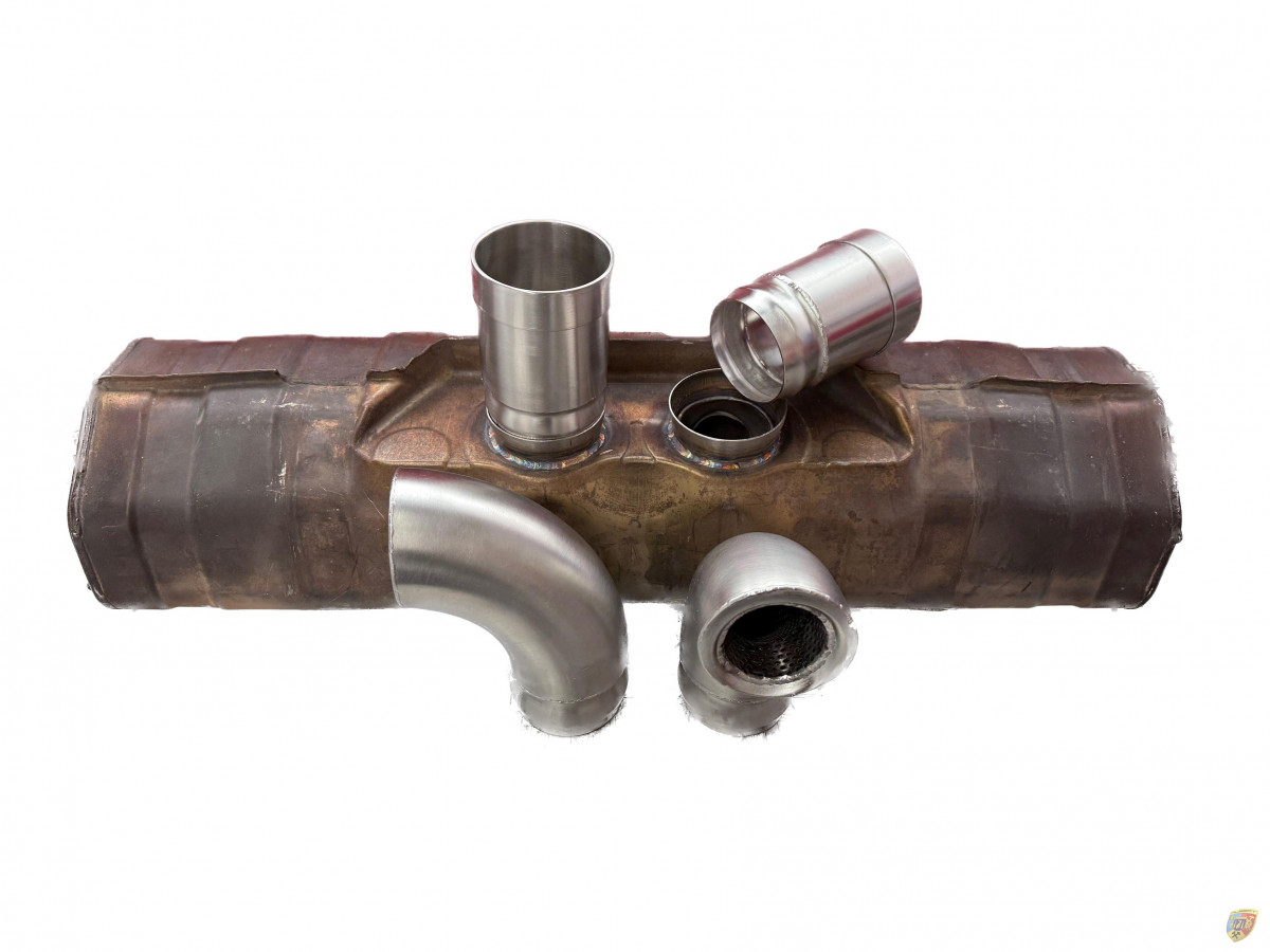 Endschalldämpfer mit fest verbundenen Endrohren.
