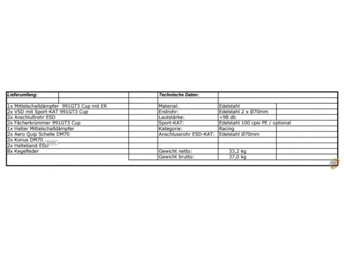991.1 GT3 Cup Rennauspuff mit Fächerkrümmern wahlweise Hitzeschutz Porsche 911. Die Anlage wird