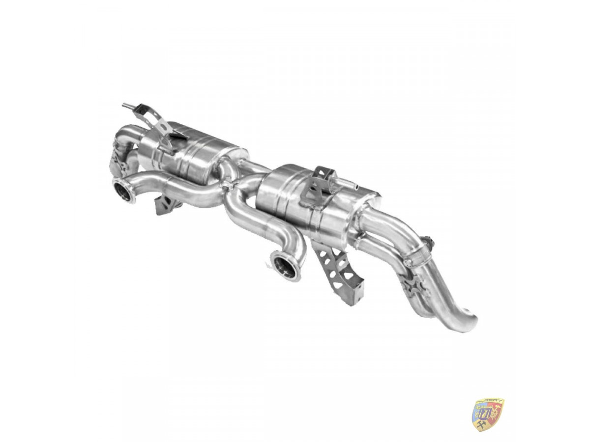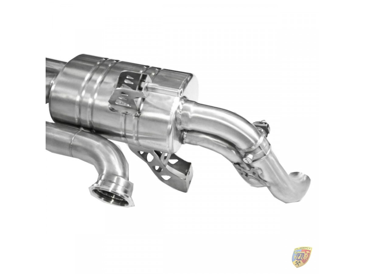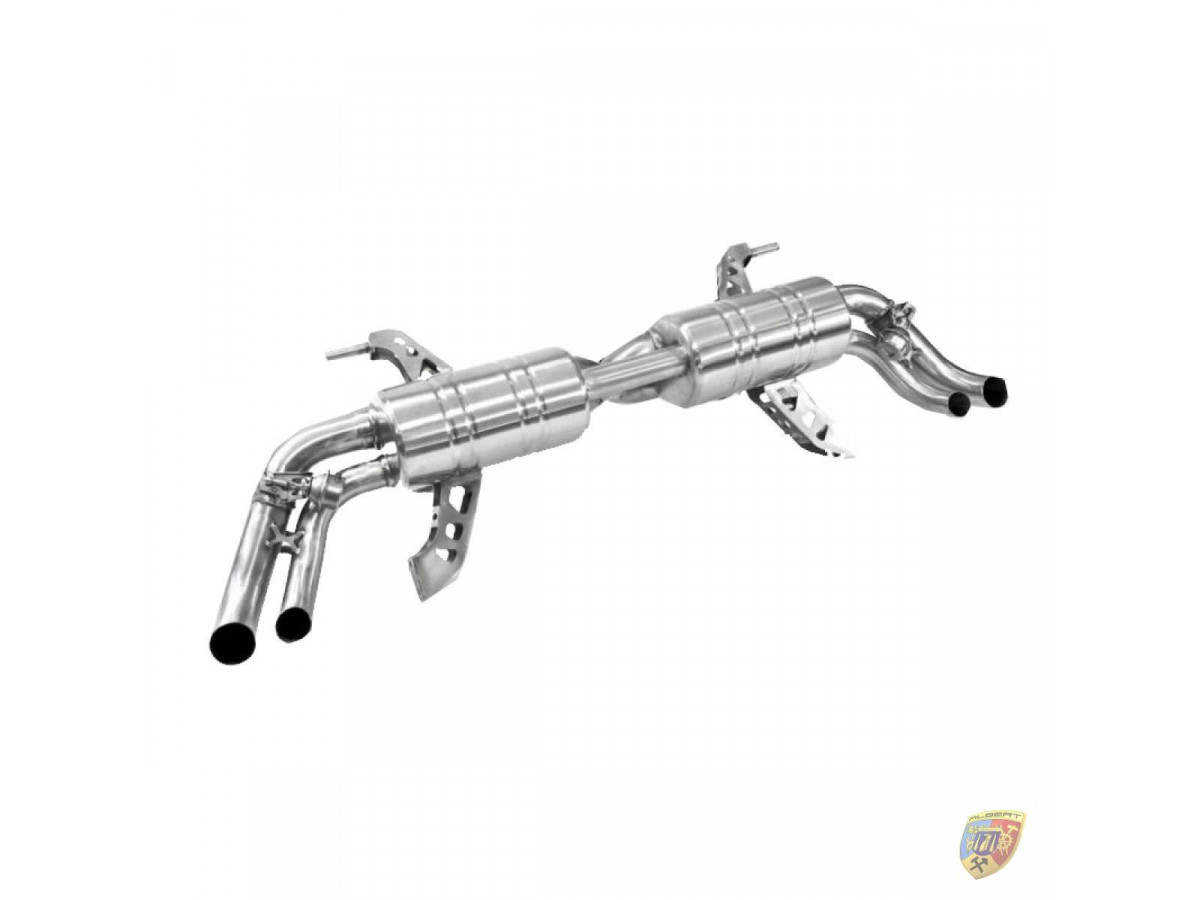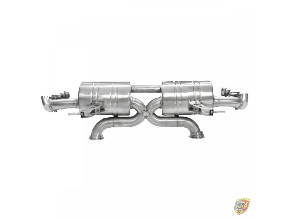 This signature exhaust has been given a euro style brushed finish and features a special X-Pipe design for better gas-flow and for performance. This exhaust is the big brother of our R8 V8 exhaust and is made in much the same manner with the same unique sound. The sound of this exhaust is a fantastic, high pitched F1 style which really gives the R8 the sound it deserves.